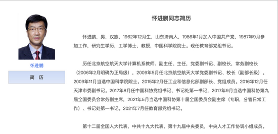 值得一提的是,怀进鹏是十八大后首位有院士头衔的教育部部长。
