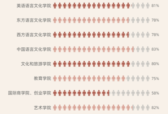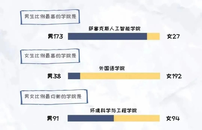 虽然男少女多,但今年浙外每个专业都有男生。其中,男生最少(只有1人)的专业有土耳其语、捷克语、波兰语、视觉传达设计;男生最多(87人)计算机科学与技术(专升本)。