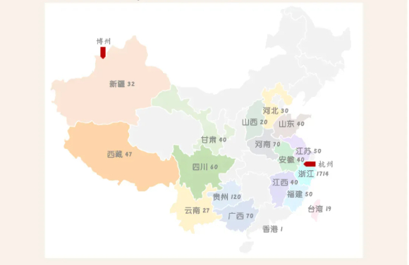 距离浙外最远地区是新疆博州;最近的是杭州市西湖区。
