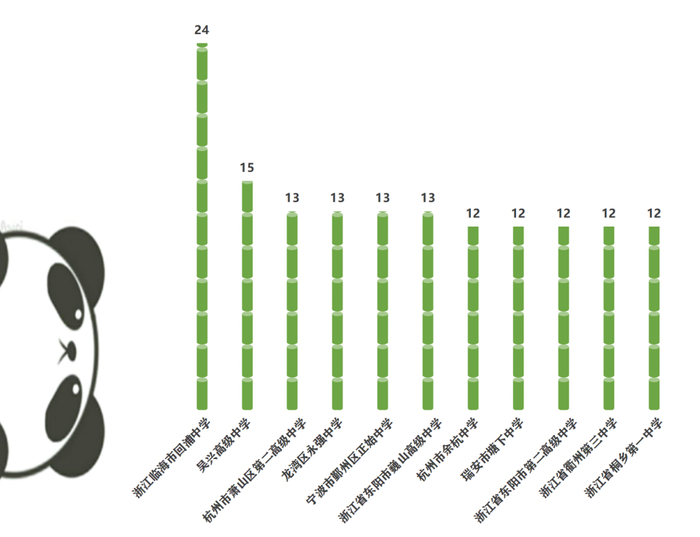临海市回浦中学从去年的top10以外直接登上今年生源中学的冠军宝座,并且生源人数远超第二名的吴兴高级中学。