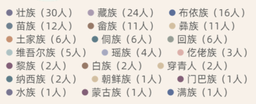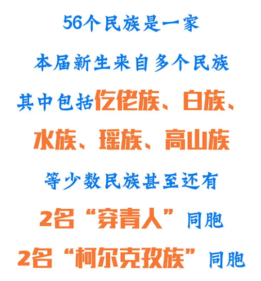2021年的温肯迎来了全国14个民族的萌新们。除了汉族之外还有满族、壮族、土家族、彝族、回族、蒙古族、傣族、土族、朝鲜族、瑶族、纳西族、苗族、达斡尔族。