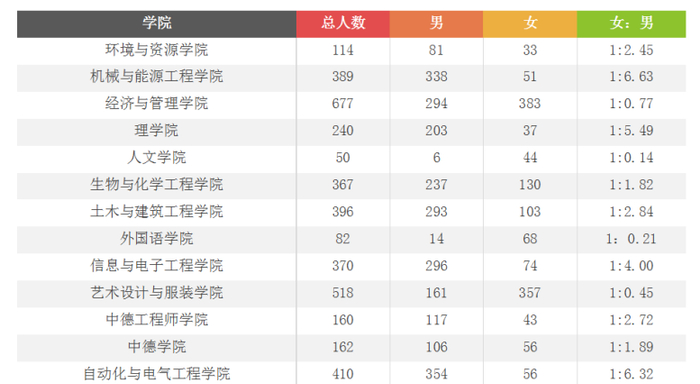 浙江各高校新生男女比例如何