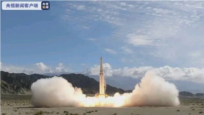 央视新闻称,“近日,火箭军常规导弹第一旅克服恶劣自然条件和复杂电磁干扰,在西北大漠快速反应,成功发射两枚新型导弹,精准命中几百公里外的蓝军多重防护阵地目标,有效瘫毁蓝军防御体系关键信息节点。”