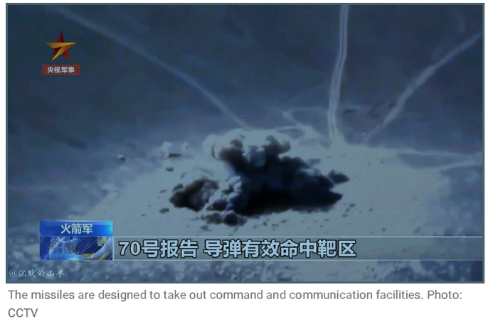 如果再细抠央视的解说词,还有新发现。这种新导弹的最大突破是“成功拓展了火箭军新质弹头种类”,说明该导弹采用了之前没有的新弹头,可以排除是集束弹头或钻地弹的可能;“有效瘫毁蓝军防御体系关键信息节点”,注意是“瘫毁”而不是常规说的“摧毁”,而且针对的是关键信息节点,并“提升先遣破敌能力”。