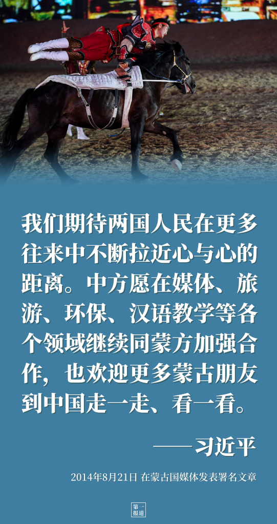 2014年8月21日,在对蒙古国进行国事访问之际,习近平主席在蒙古国《日报》、《今日报》、《世纪新闻报》、《民族邮报》、蒙古新闻网网站发表署名文章,提出策马奔向中蒙关系更好明天的愿景。