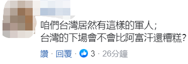 也有网友表示,“咱们台湾居然有这样的军人,台湾的下场会不会比阿富汗还糟糕?”↓