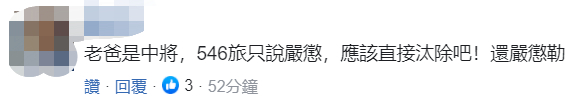 对此,有岛内网友表示,“老爸是中将,546旅只说严惩,应该直接汰除吧!还严惩勒”。↓