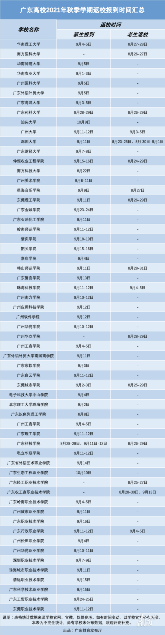 近日,广东多所高校陆续公布新老生分批返校报到时间,主要集中在8月下旬和9月上旬。