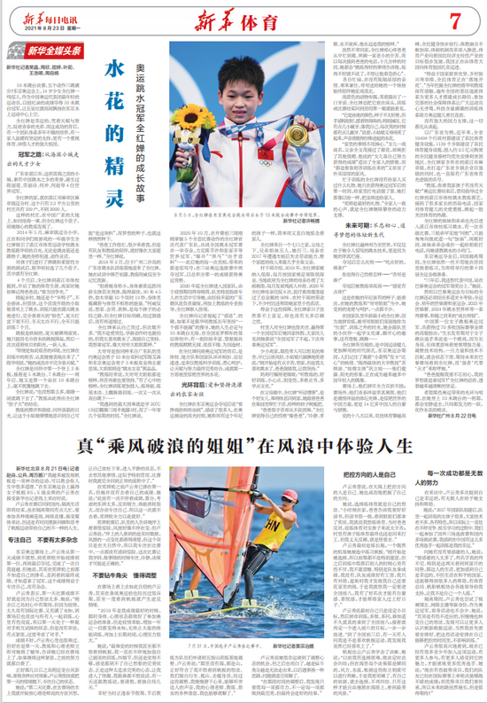 全红婵是同伴中第一个登上3米板,接着是5米跳台、7米跳台……两年后,她又是第一个站在10米跳台上,毫不犹豫地跳下去。