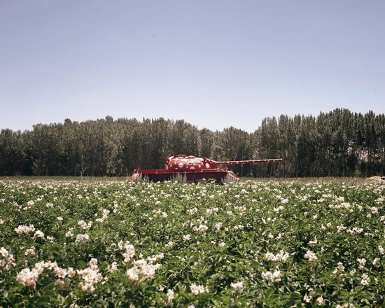 2018年,巴米扬大佛对面土豆田内的一辆废弃苏联坦克,被伊朗艺术家刷成了斑点状红色。