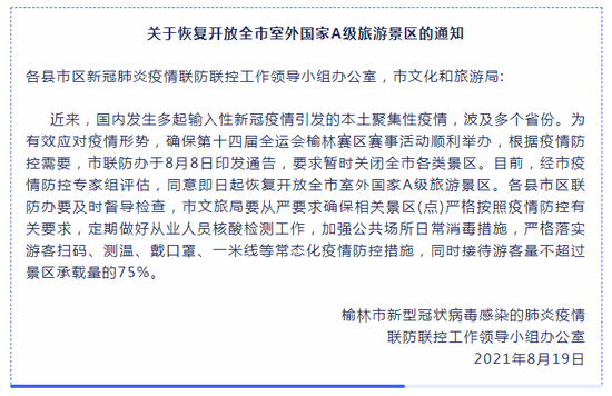 榆林市恢复开放