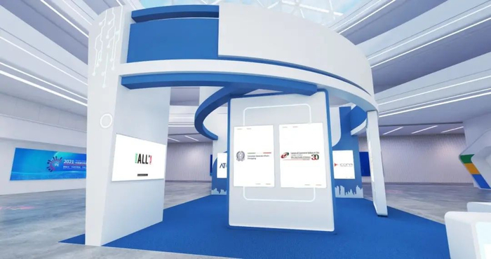 2021智博会意大利国家馆由意大利驻重庆总领事馆与中国意大利商会联合打造,主题是“创新之美 • 智能科技成就意式生活” ,以线上及线下方式呈现,展示了一些意大利重要企业和品牌的最新设计和科技,所涉及领域包括汽车、智能机器人技术、工业制造、自动化、半导体和智慧出行。