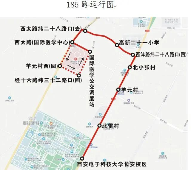 西安市公共交通集团于近日宣布:往返国际医学中心和西电东门的185路将于8月25日开通。