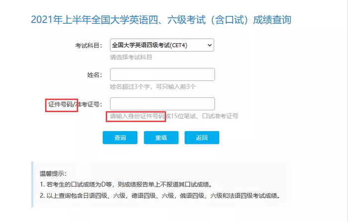 个人姓名、考试级别和准考证号输入有误,请重新检查后再输入。特别提醒,四六级查分期间只能查询这次考试成绩,不能查询以往考试成绩,也就是这一阶段只能查这一阶段的考试成绩。