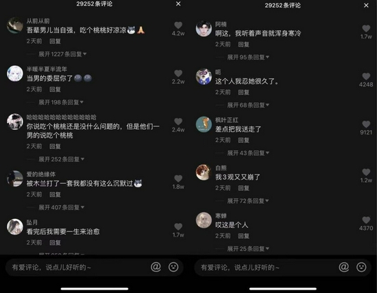 但正是以这样一种方式,风小逸迅速走红网络,数据显示,上述吃桃视频一夜之间收获超50万点赞,千万播放,风小逸的个人账号也涨粉超过10万,相关话题在抖音上收获5.4亿次播放。