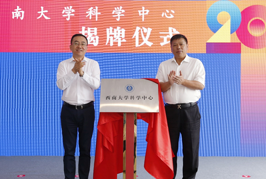 张卫国与北碚区委副书记、区政府区长何庆共同为西南大学科学中心揭牌。科学技术处处长、种质创制科学中心建设办公室主任胡昌华代表学校与西部(重庆)科学城北碚园区开发建设有限公司董事长寇韦弦签订西南大学科学中心首期示范工程入驻项目合作协议。