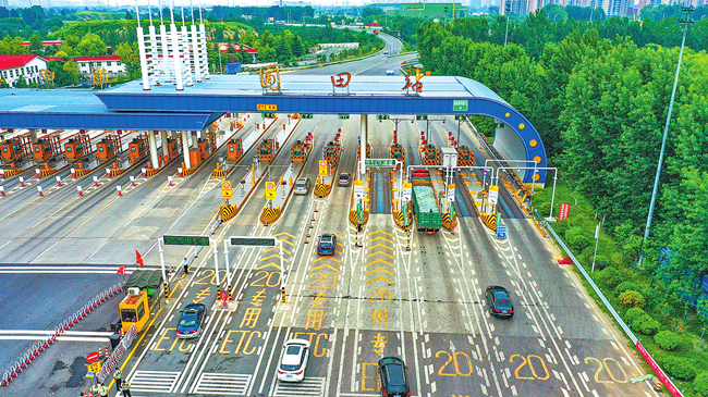 8月28日中午12时,京港澳高速郑州圃田站出入口,车辆正在有序通过。(记者 聂冬晗 摄)