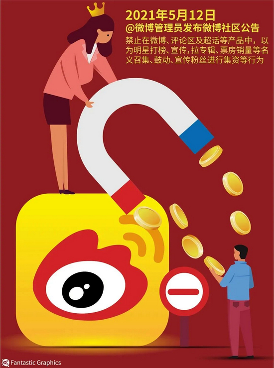 8月27日,中央网信办发布通知,要求取消所有涉明星艺人个人或组合的排行榜单;而早在今年5月,微博就下线了让无数“数据女工”沦陷、掀起腥风血雨的明星势力榜、明星超话“积分助力”机制。