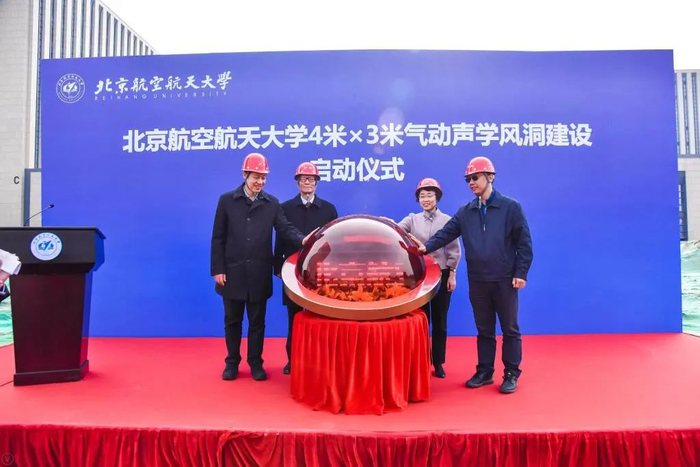 张彦仲院士(左二)参加北航4米×3米气动声学风洞建设启动仪式