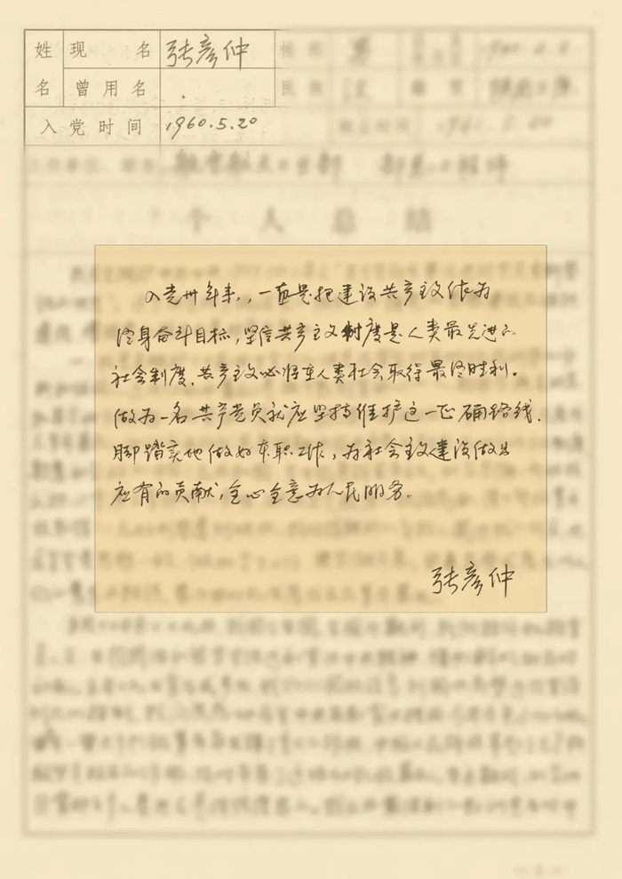 ——摘自张彦仲1990年5月《中国共产党党员登记表》