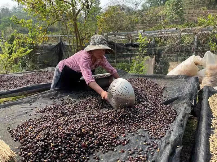 3. 半干法加工(蜜处理)。根据日晒时间与果胶量不同又分为黑蜜、红蜜、黄蜜三种加工工艺。