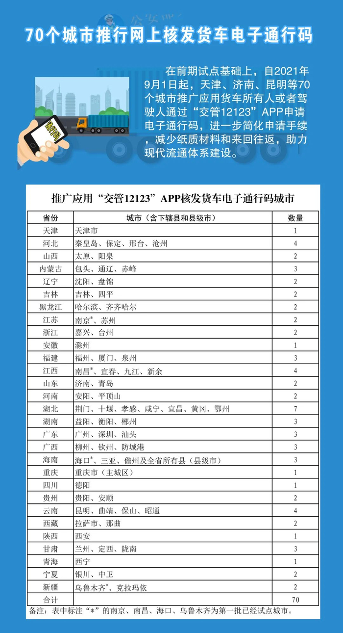 为进一步深化公安交管“放管服”改革,扩大改革措施覆盖面,经部分省市试点推行,9月1日起,驾驶证电子化、二手车异地交易登记、“交管12123”APP核发货车电子通行码、交通事故证据材料网上查阅等4项公安交管便利措施将在全国分批推行。