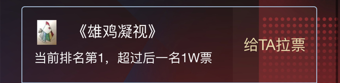 截至8月30日20时06分,手绘海报《雄鸡凝视》“一鸣惊人”,在100幅入选作品中暂列第一,领先第二名超1万票。