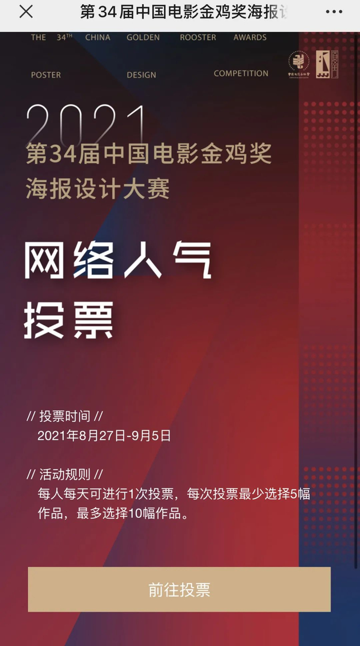 8月27日,第34届中国电影金鸡奖海报设计大赛网络人气投票开启,截至8月30日21时46分,累计票数超过41万。