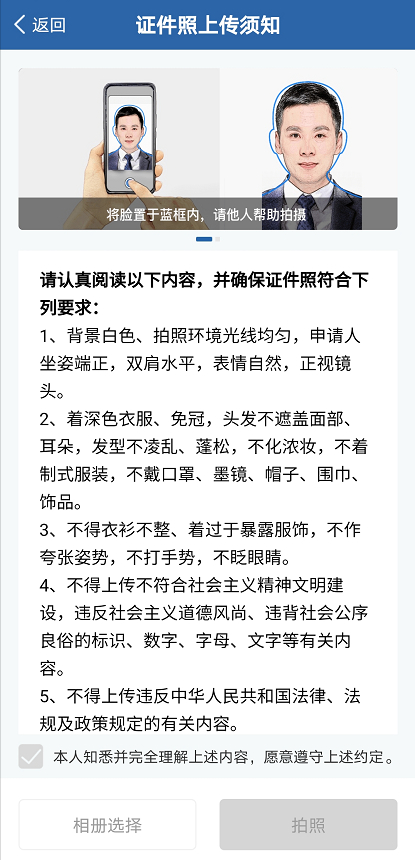 值得注意的是,用户应上传近6个月内的证件照片,不得对人像特征进行技术处理,不得使用合成相片。