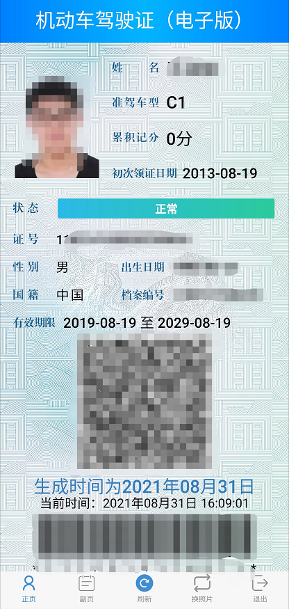 记者发现,在电子驾驶证下方,有4个模块,除了正页,还包括驾驶证副页详细信息,更换照片功能。