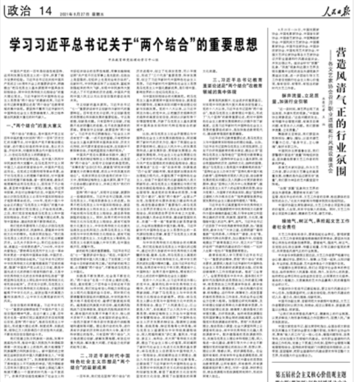 就在8月27日,“教育部党组理论学习中心组”在《人民日报》上刊发了一篇名为《学习习近平总书记关于“两个结合”的重要思想》的文章。