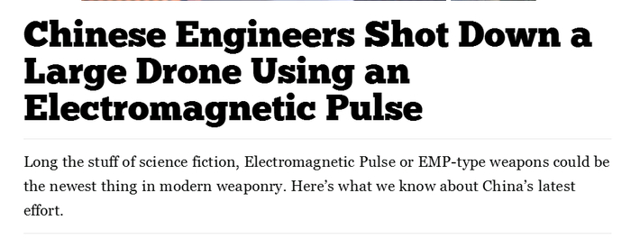 “这可能是中国首次公开承认,利用强大的电磁脉冲武器击落一架大型无人机”。
