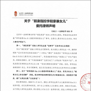 十年前,委托人李阳先生与其前妻由于“文化与性格差异”产生矛盾,李阳先生承认对前妻Kim女士发生了家暴,委托人至今依然深感悔恨,日日忏悔!但是,此次指控 “李阳先生对女儿实施家暴”完全不属实。所谓“谣言止于智者”,作为李阳先生代理律师,我恳请广大网友一定要全面了解真相,切莫被不良自媒体以讹传讹,带偏节奏!