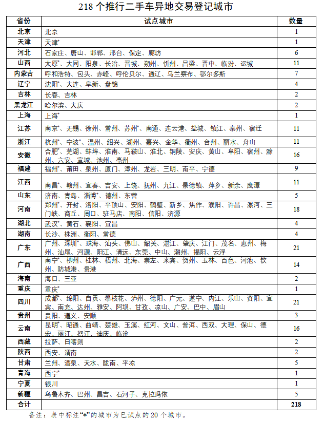 据了解,为解决群众办事的难点堵点,进一步促进二手车交易行业发展,公安部会同商务部、税务总局推行小型非营运客车二手车交易登记“跨省通办”,方便群众在转入地直接办理交易登记,无需往返两地,更好促进二手车流通。今年6月起,非营运小型、微型载客汽车二手车交易登记“跨省通办”措施在天津、太原、沈阳、上海等20个城市率先启动。从9月1日开始,北京市等全国218个城市全部推行。