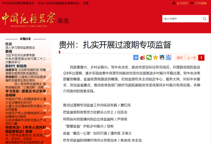 原标题:《中国纪检监察》杂志以封面专题形式深度关注我省纪检监察工作