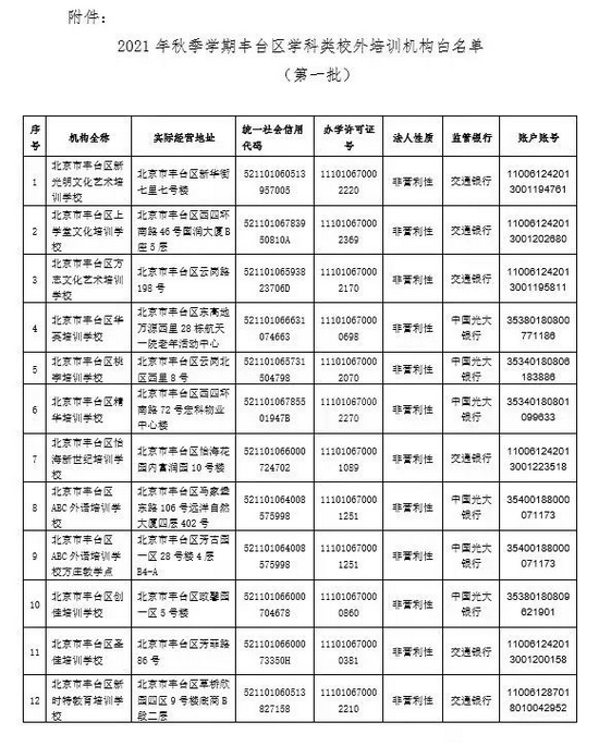 原标题:北京12区公布首批学科类校外培训机构白名单!一文汇总