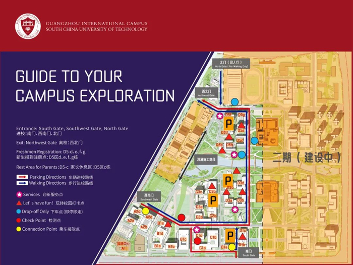 广州国际校区设置3个返校入口,包括南门、西南门、北门。