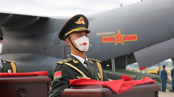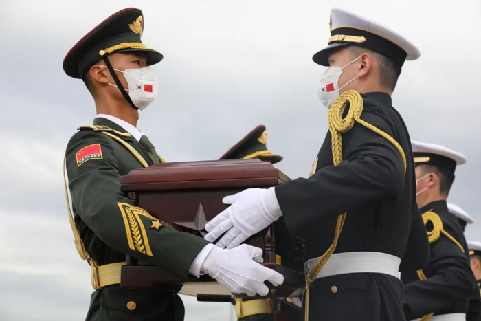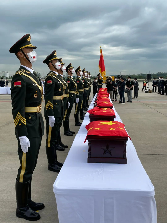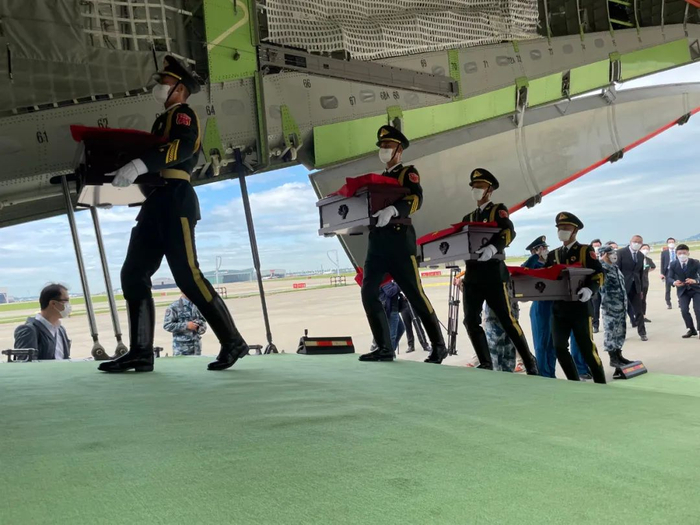 在场人士向烈士遗骸三鞠躬表示哀悼