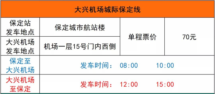 自2021年9月3日起,大兴机场廊坊线、保定线恢复运营,具体信息如下: