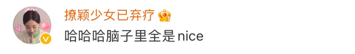 由于这个表情太过于魔性,看过的人中很少有人能逃得过“被洗脑”的魔咒......今天一早,“脑子里全是nice”还被顶上了热搜↓