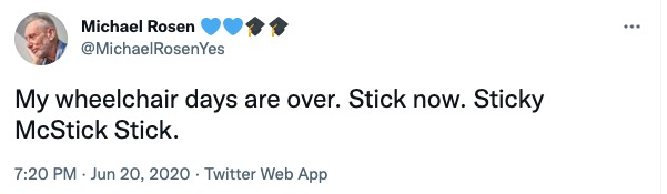 为了记录这段经历,Michael Rosen还专门写了一本童话书《Sticky McStickstick》。