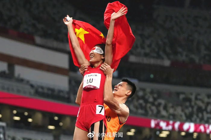 @央视新闻 4日消息:这组搭档又赢了!刚刚结束的东京残奥会田径女子200米T11级比赛中,中国选手刘翠青与领跑员徐冬林夺得金牌!刘翠青和徐冬林已并肩作战8年,祝贺他们!