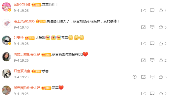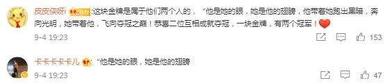 对此,网友们纷纷留言恭喜,“一块金牌,有两个冠军”,“他是她的眼,她是他的翅膀。”