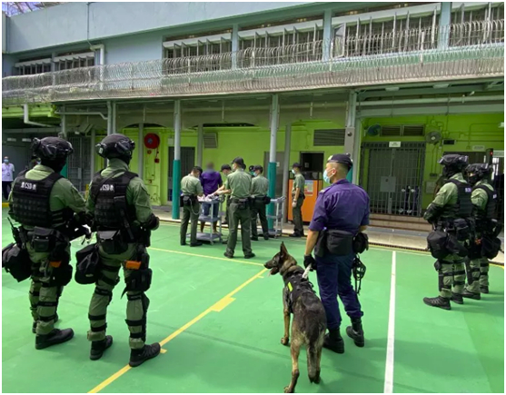 香港惩教署2日采取行动打击囚犯非法活动,6名藏有违禁品的囚犯被纪律检控,不料另有18名囚犯集体鼓噪,要求取消对这6人的纪律检控。香港惩教署派出“黑豹部队”止乱,18名搞事者被隔离调查。