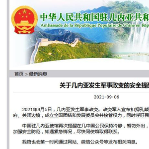 原标题:中国驻几内亚使馆:在几中国公民暂勿外出 加强安全防范