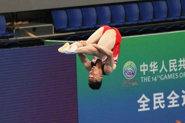 奥运冠军董栋领衔的山西男队成为所有对手忌惮的夺冠热门,这也给小伙子们带来极大压力。男子团体决赛,第一轮出场的队伍是广西队、湖南队、山东队和上海队,广东队、天津队、山西队和江苏队第二轮出战。董栋、涂潇二位“国手”及廉时栋、李宇名,在全场观众的欢呼和助威声中,一一出场,起跳、转体、团身、翻腾,精准把控每一动作,力量、速度和美的完美融合惊艳全场,4人分别获得60.350分、58.305分、58.540分、56.960分,去掉一个最低分,最终得分177.195分。经过鏖战,山西队未能超越预赛第一的江苏队,排名第二。江苏队以总分178.105分独占鳌头,山东队以总分172.875分排第三。