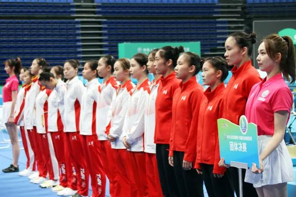 山西队由于一名队员受伤,胡译乘、许晴晴、张慧荣、王子瑄、张欣欣5名队员竭尽全力,逐鹿赛场,获得总分363.330分,预赛排名第八,压线晋级决赛。决赛,胡译乘、许晴晴、张慧荣、张欣欣4名队员发挥出色,先后获得54.580分、53.215分、53.900分和54.450分,计算三个最高分,山西队以总分162.930分暂居第一。超越女子团体预赛前三名的队伍,山西队有希望也有压力。第二轮比赛,强势的福建队和卫冕冠军广东队先后有一人失误。最终,山西女队凭借整体实力均衡优势以总分162.930分夺得这枚宝贵的金牌。浙江队、广东队分获第二名、第三名,成绩是162.895分和159.315分。