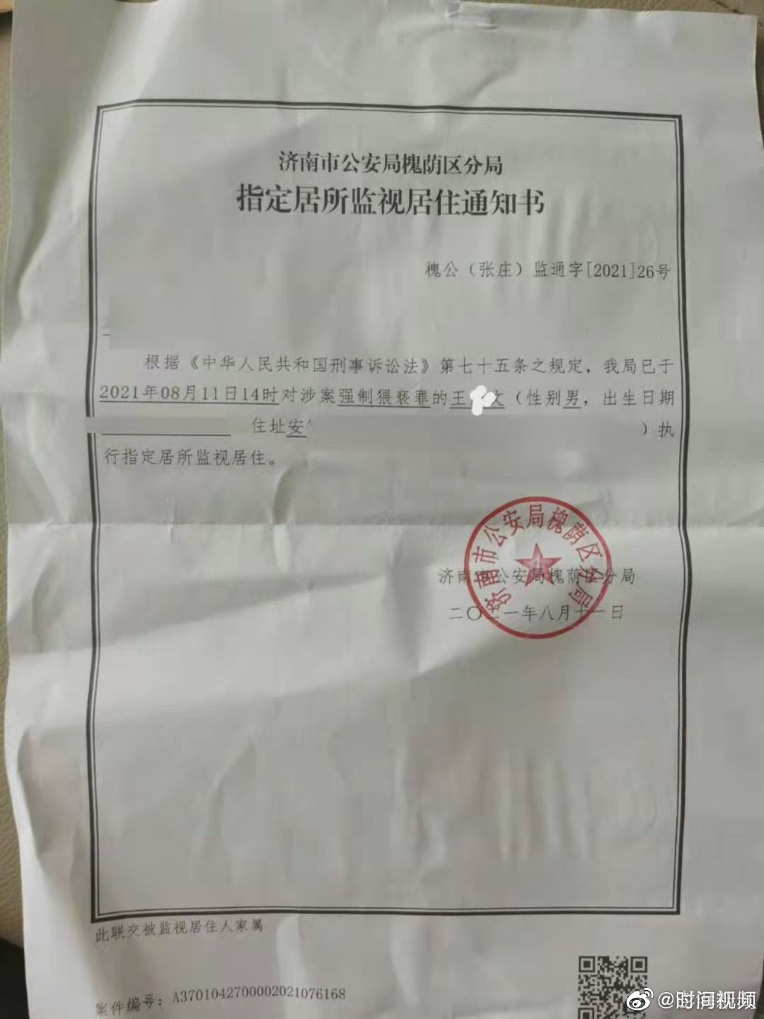 “阿里女员工被侵害案”嫌疑人王某文已被指定居所监视居住