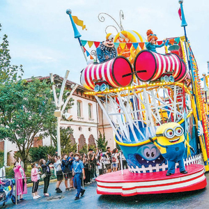 傍晚时分,很多游客都会来到道路两旁,驻足观赏“环球大巡游”项目。伴随着动感的电影配乐,小黄人、格鲁、功夫熊猫等游客熟悉的卡通IP形象将依次出现,和游客热情互动。