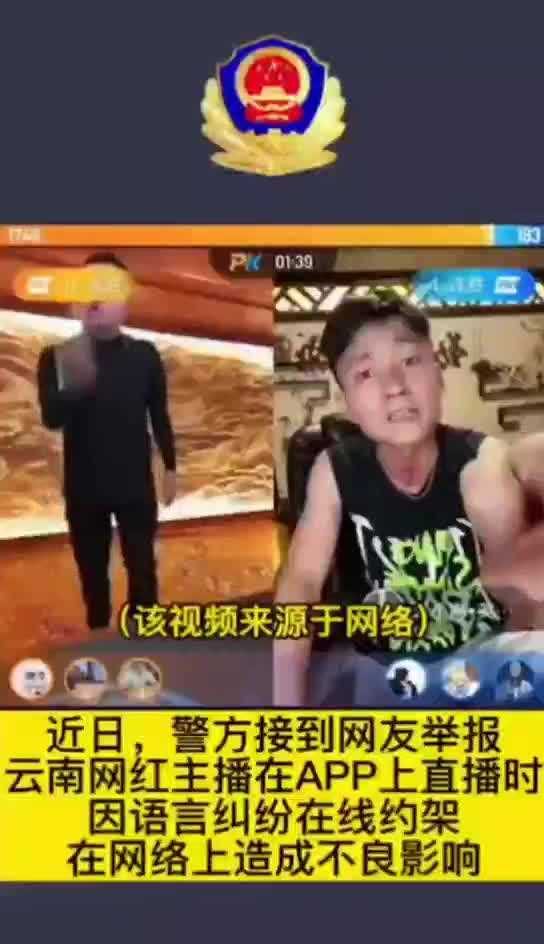 近日,昆明市公安局接到网友举报,云南网红主播“云南达摩”和“云小海”在快手APP上直播时因语言纠纷在线约架,在网络上造成不良影响。接报后,公安机关迅速介入调查。